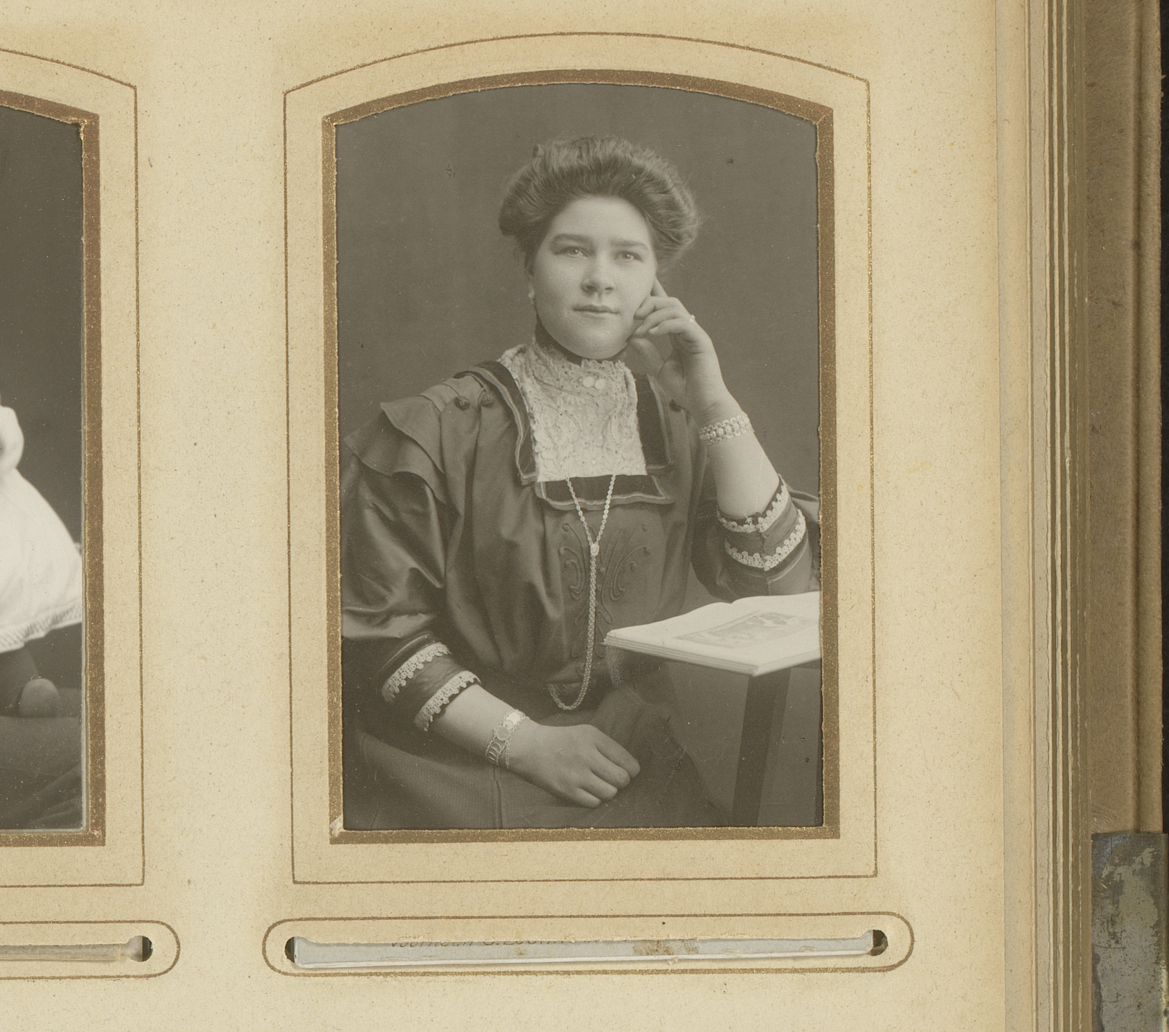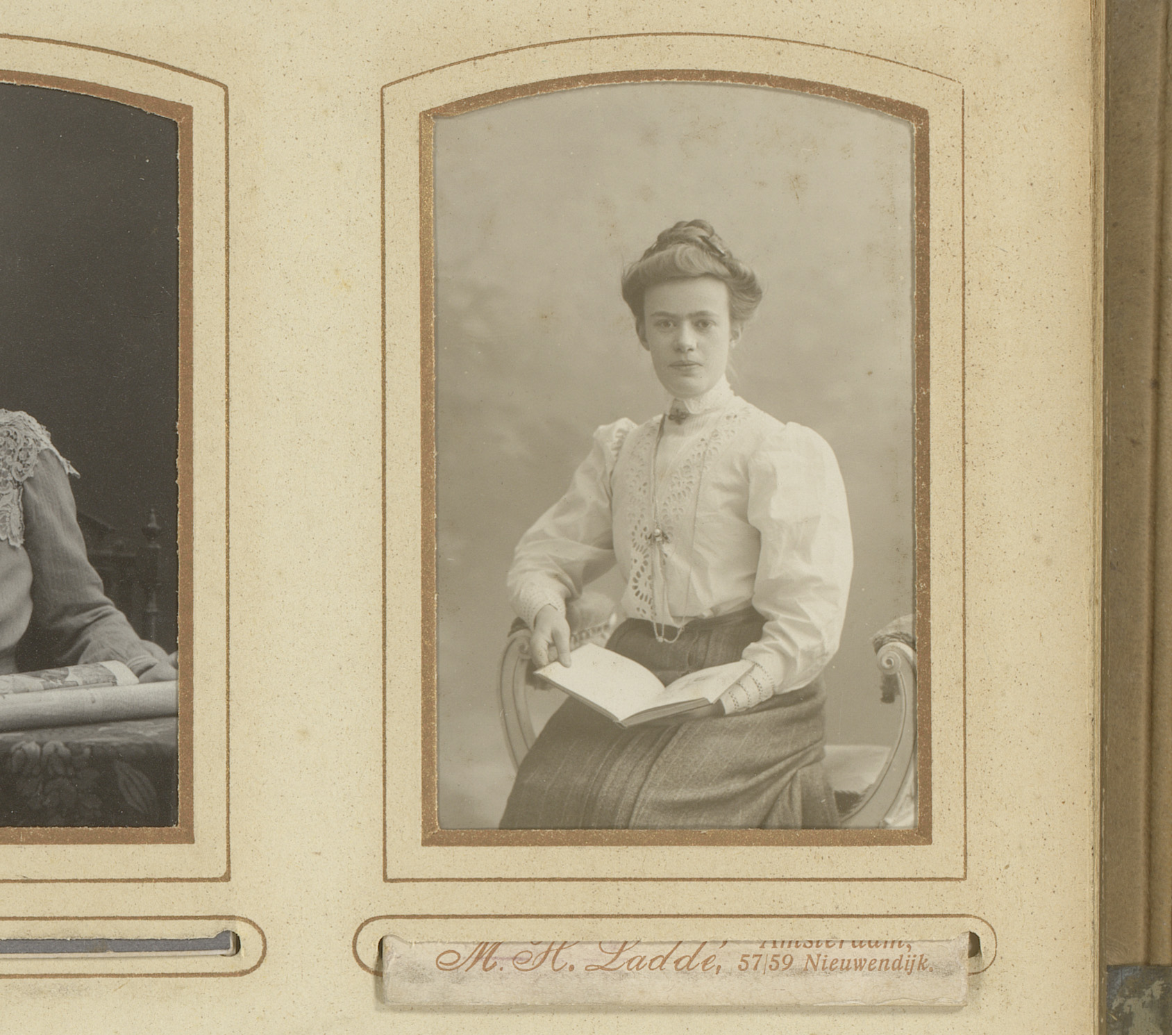 Portret van een zittende vrouw met boek