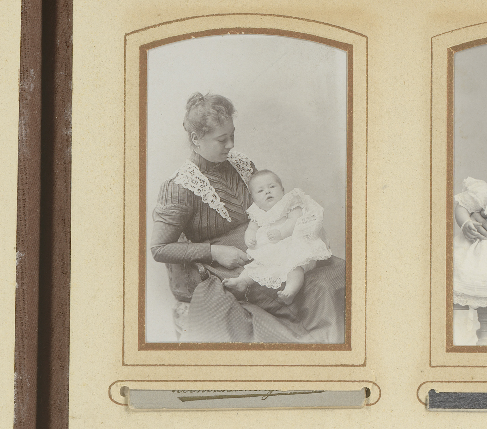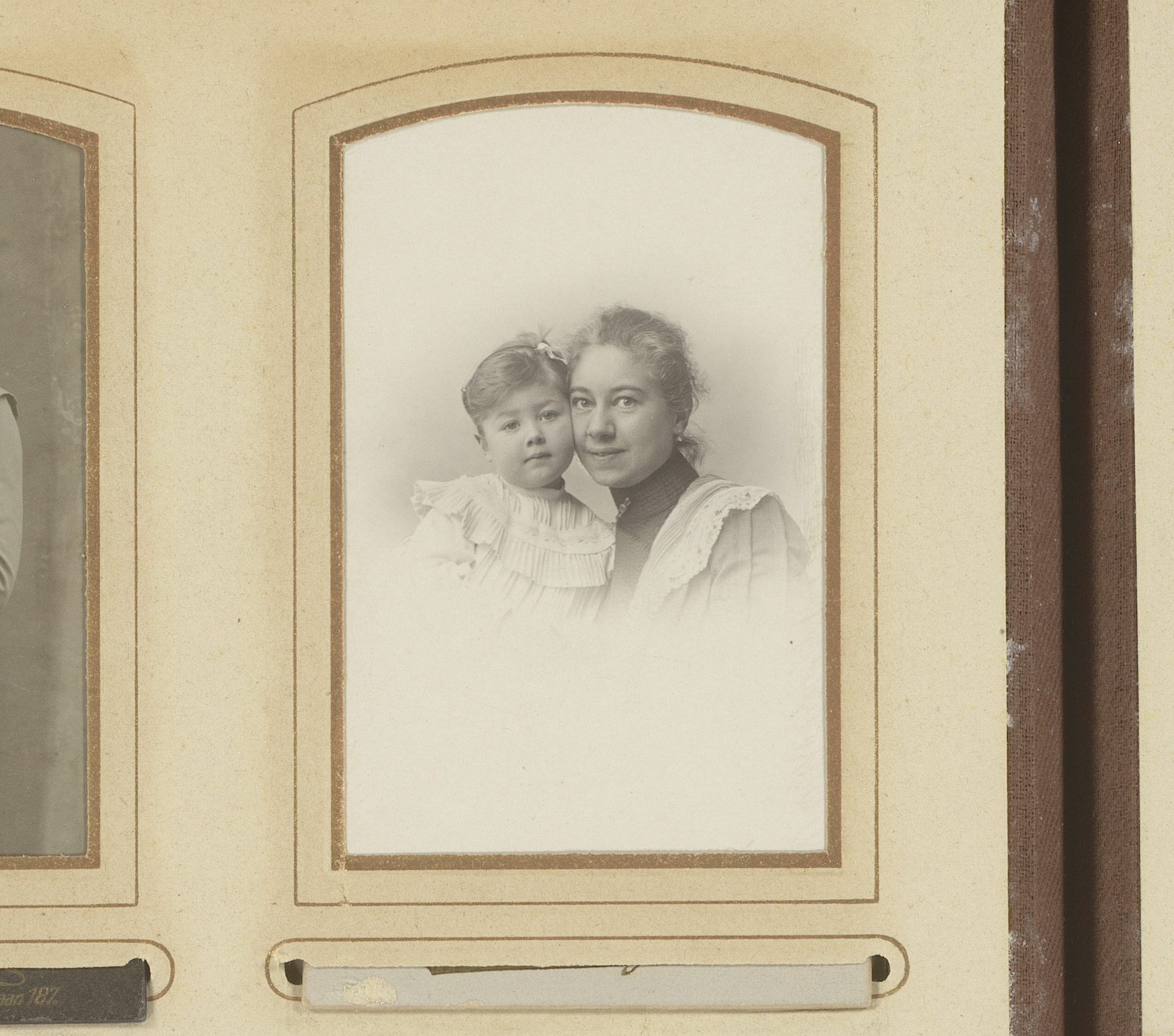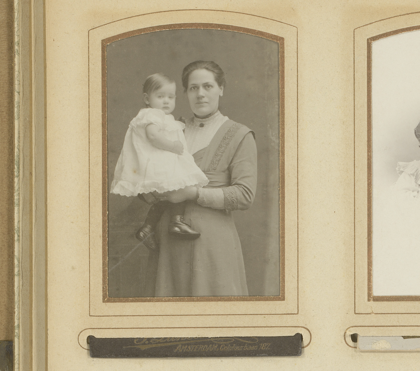 Portret van een moeder met kind, aangeduid als Griet...