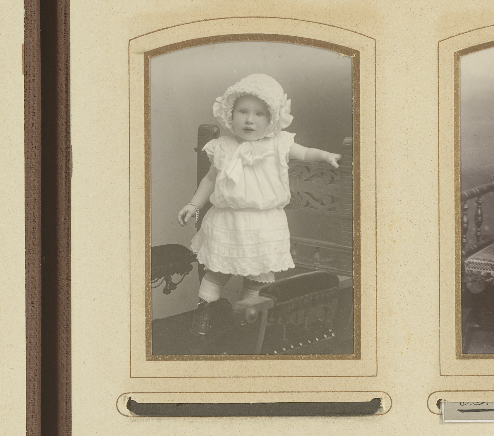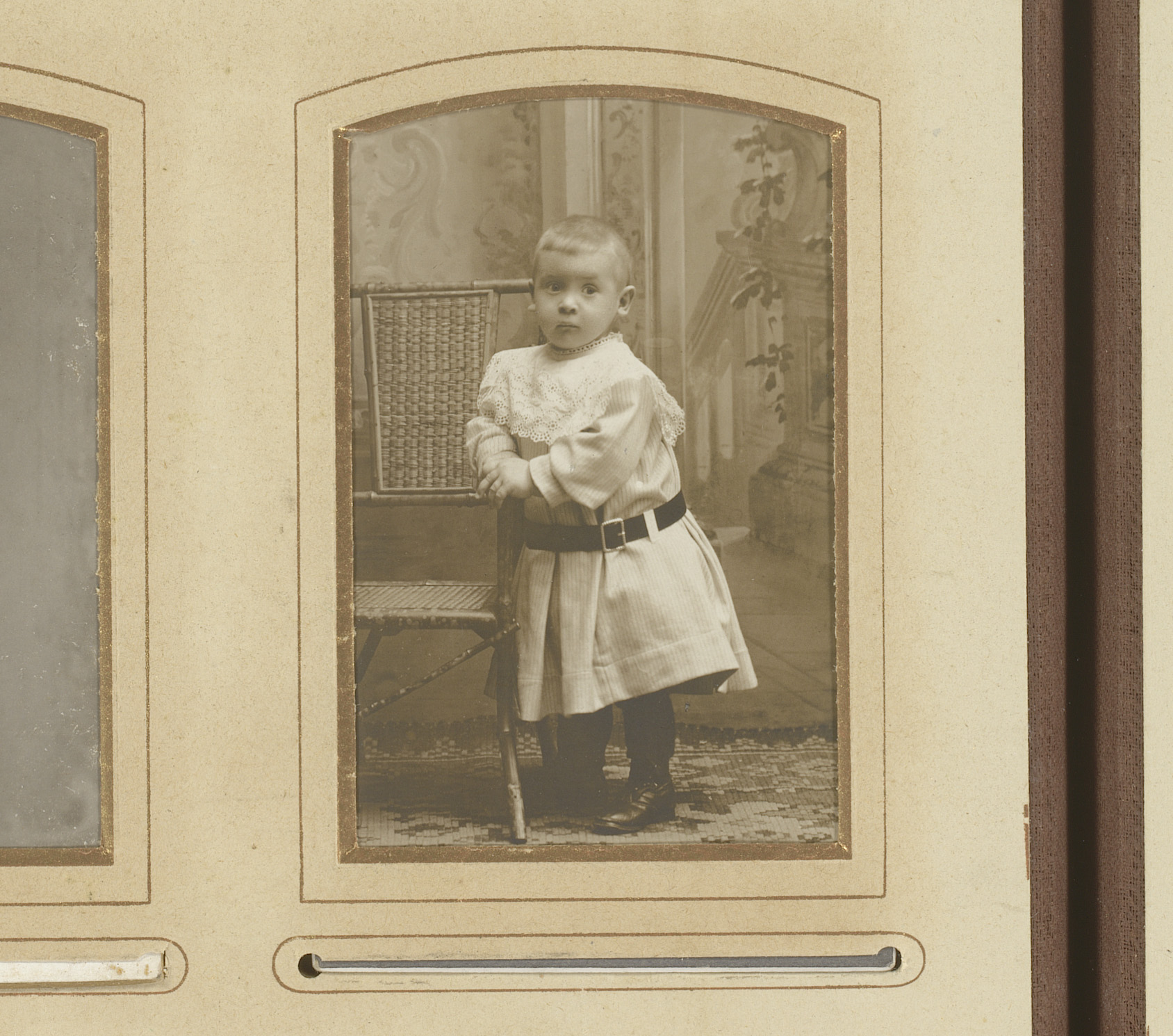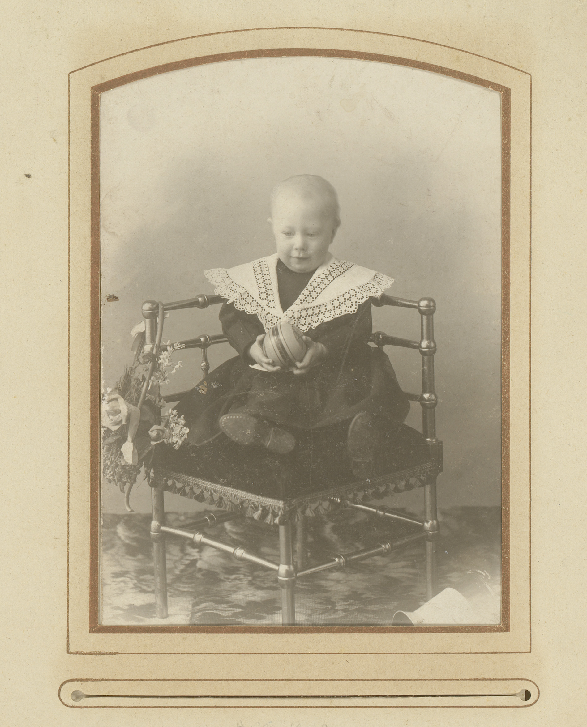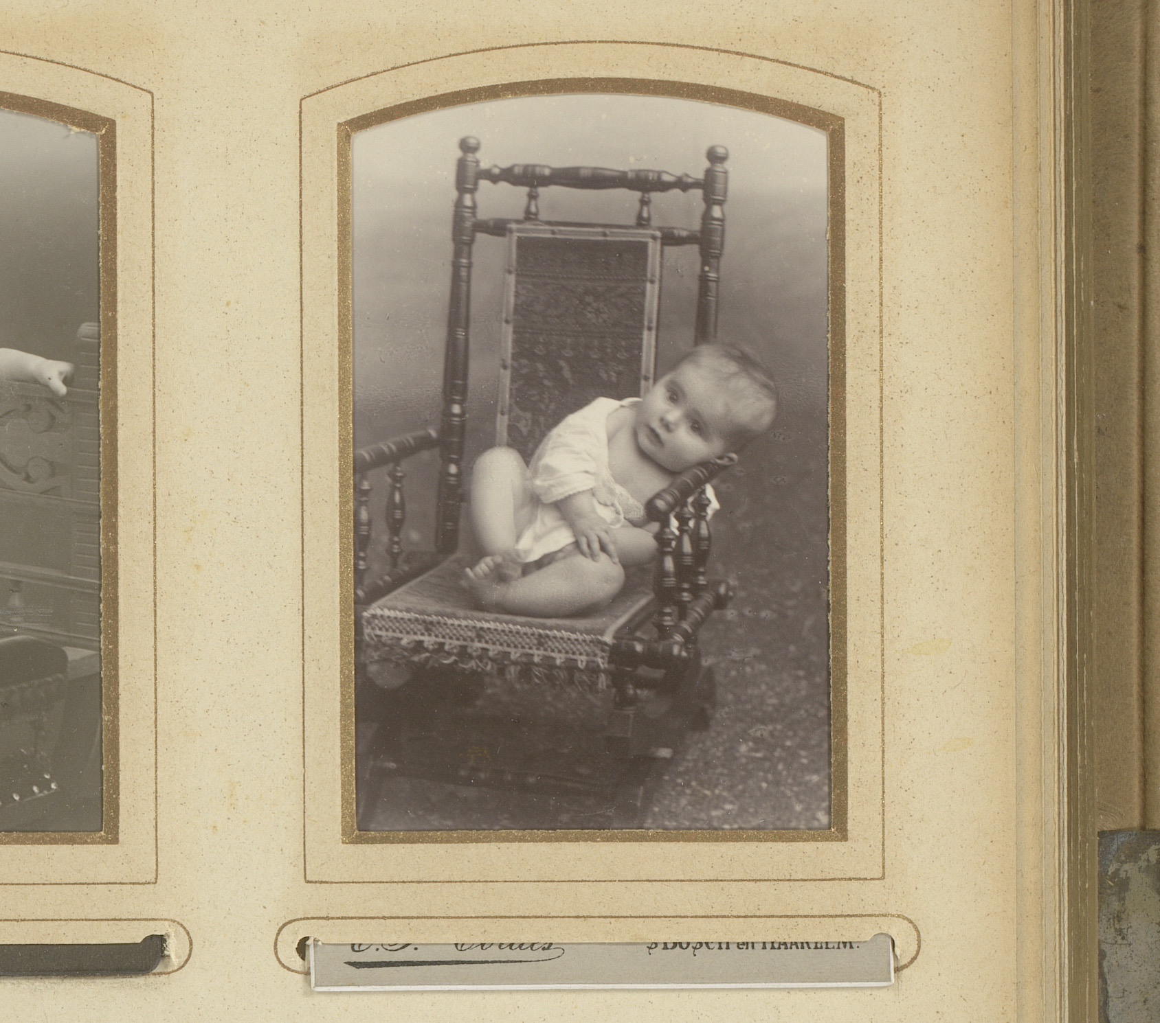Portret van een kind, zittend in een stoel
