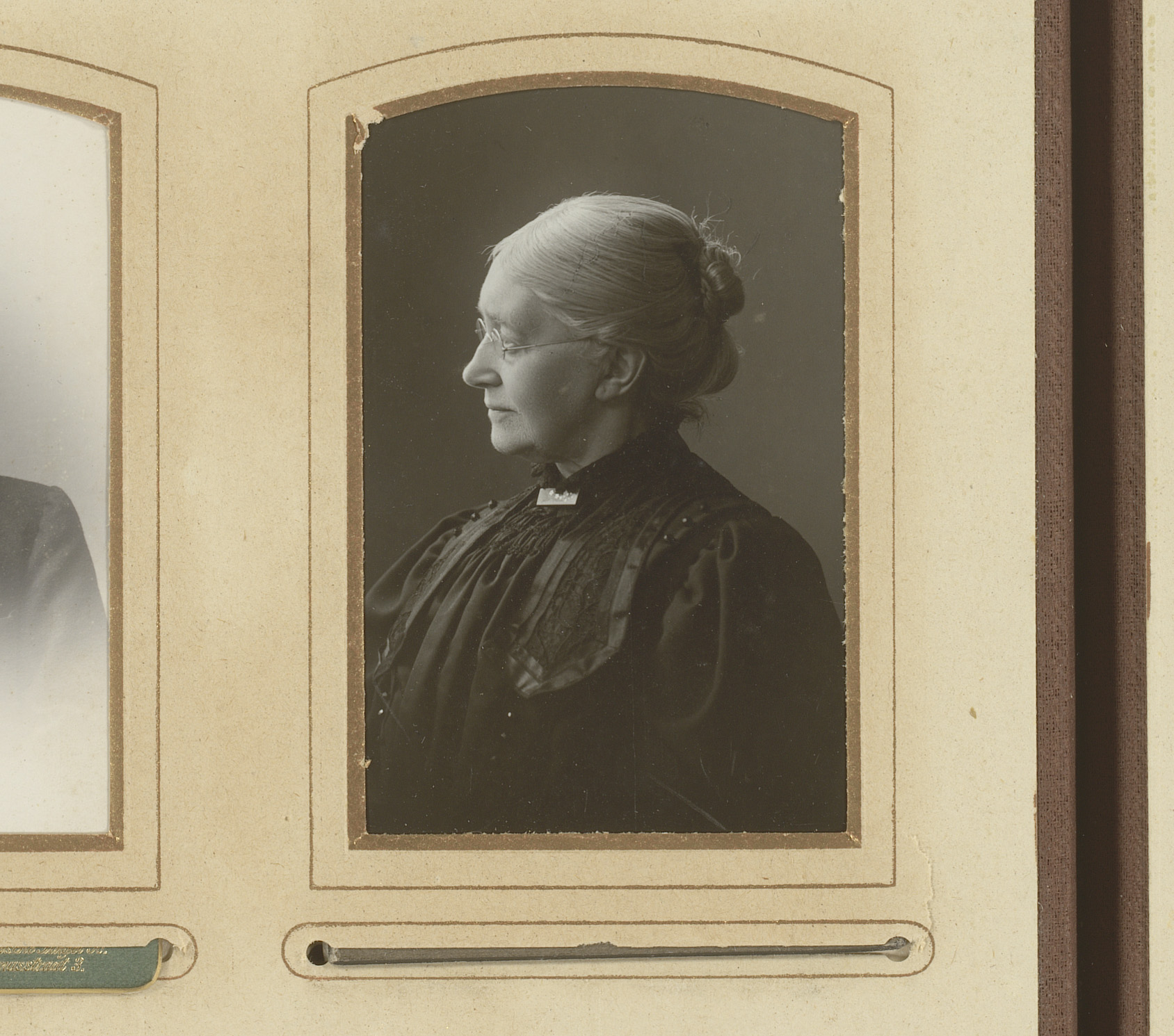 Portret van een oude vrouw met bril