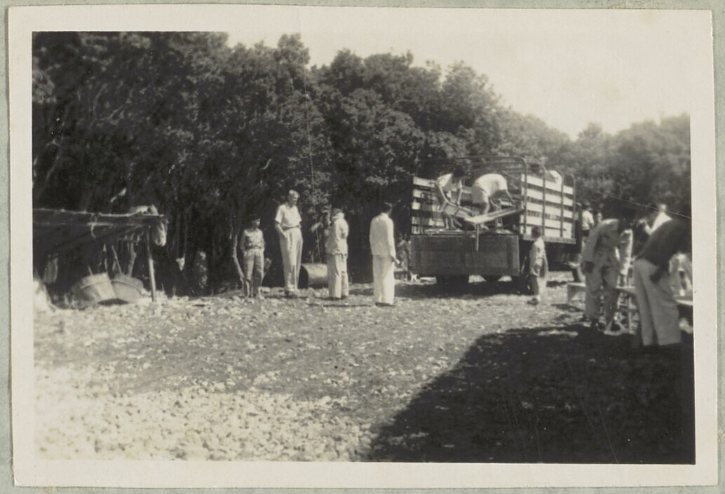 Europese opzichters en Javaanse arbeiders in Sambawa...