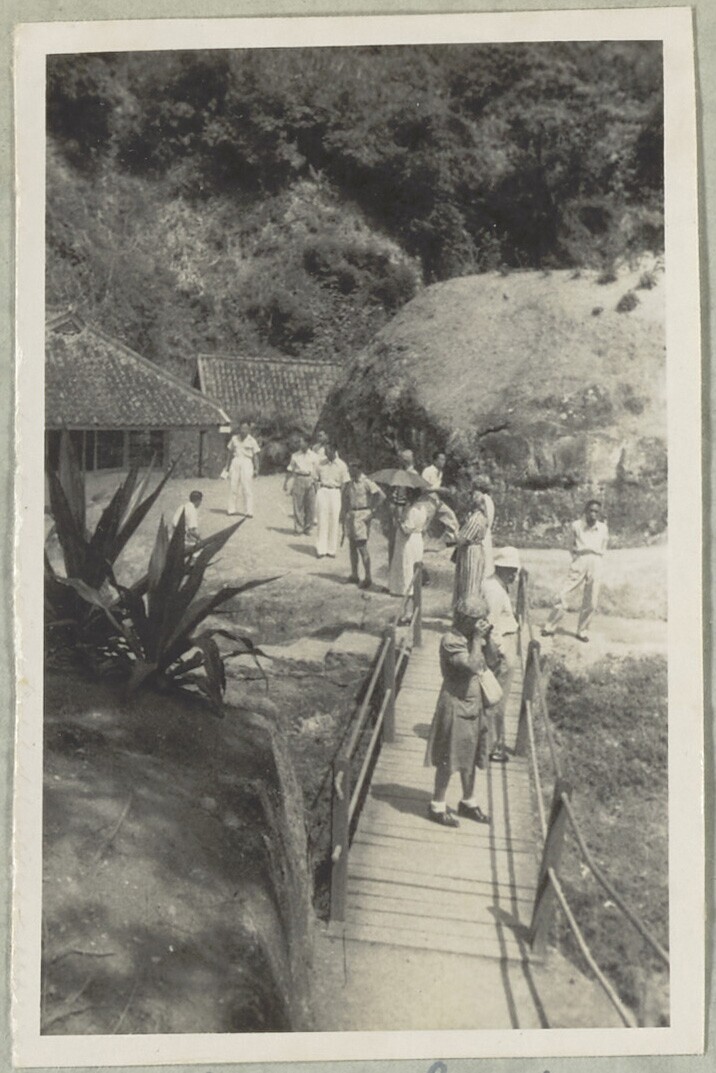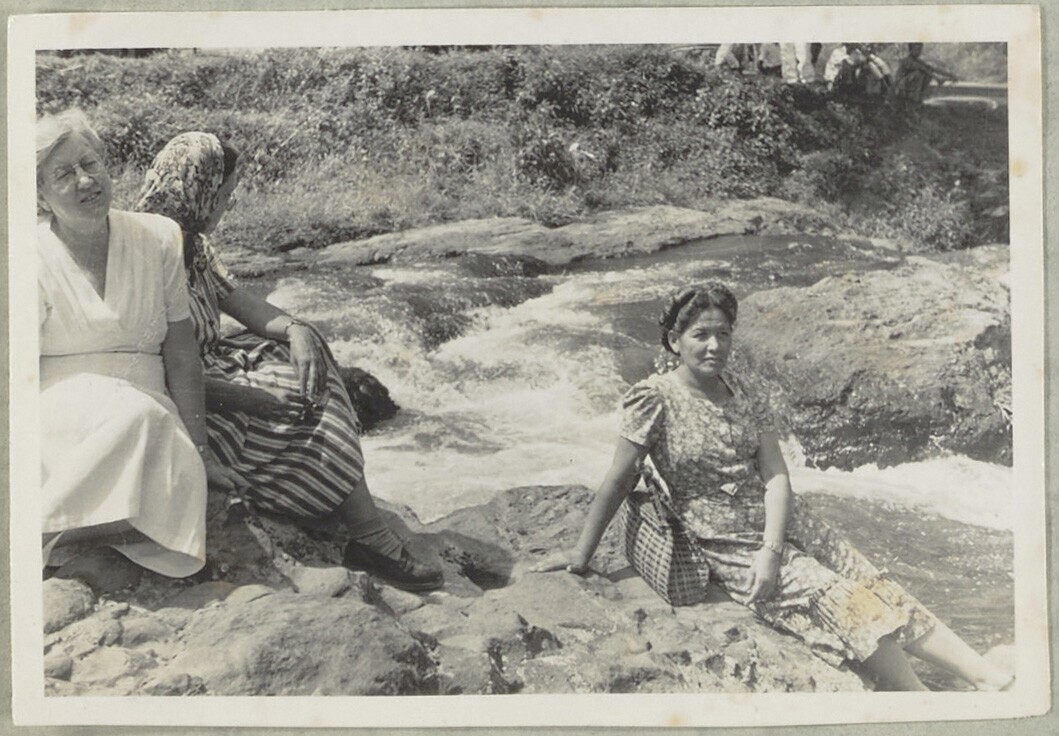Europese vrouw met twee javaanse vrouwen bij stroomv...