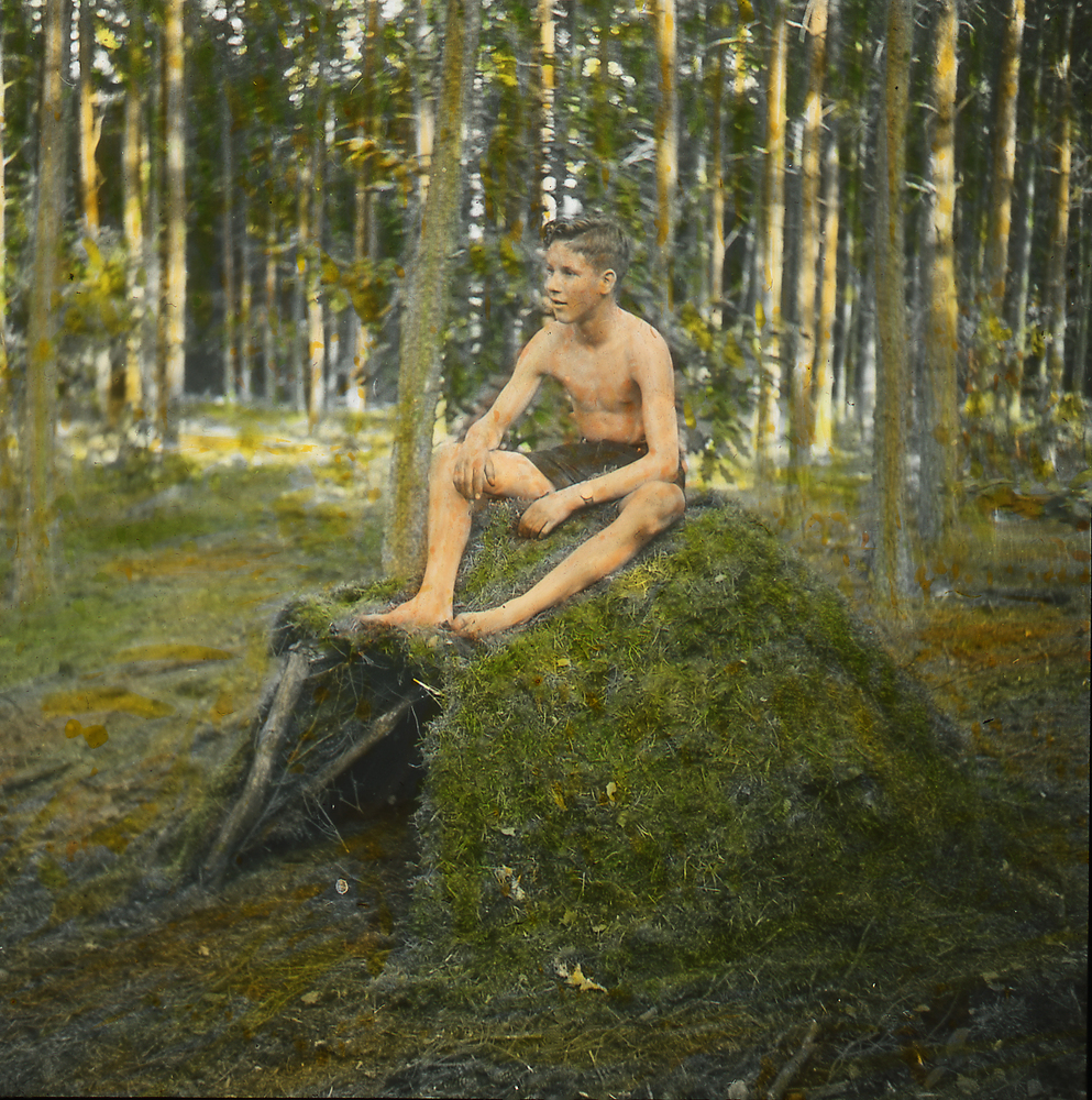 Theo Maassen bij zijn hut in het Willemsbos 26 septe...