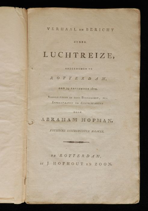 HOPMAN, ABRAHAM. Verhaal en bericht zyner luchtreize