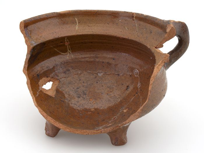 Aardewerk kookpot, laag model met wijde bovenrand, t...