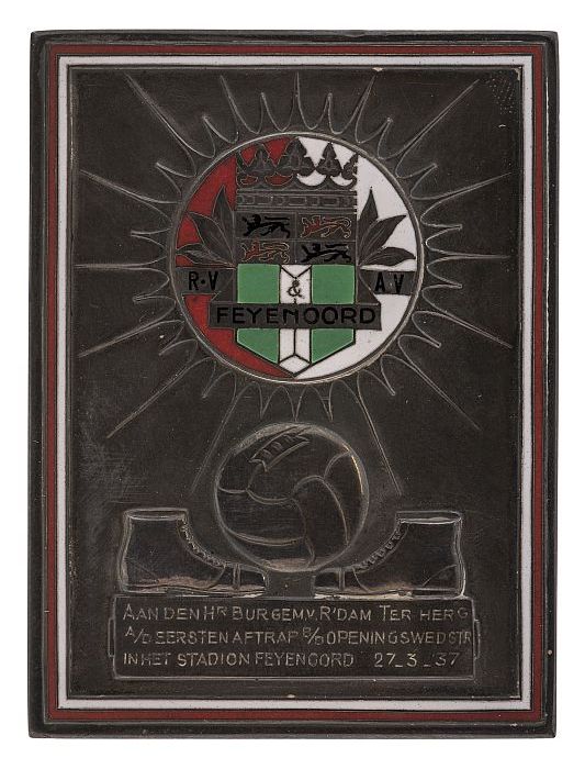 Plaquette van de openingswedstrijd in het Feyenoord ...