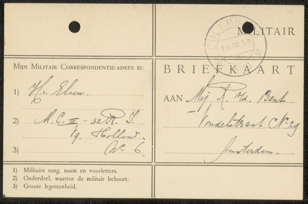 Briefkaart "Militair" van 19-III-1940 van Henk