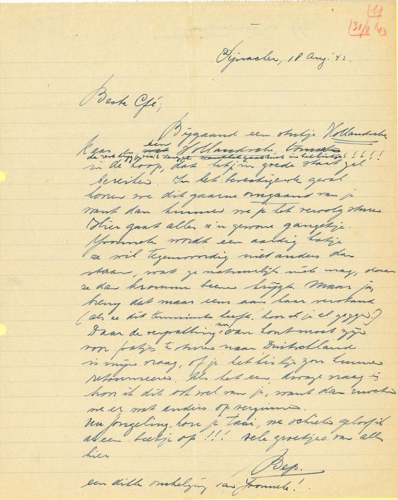 Brief van Bep in Pijnacker aan Gé Verbeek in Watenst...