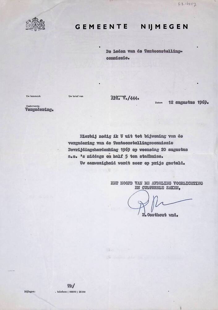 Brief van de Gemeente Nijmegen, uitnodiging tot bijw...