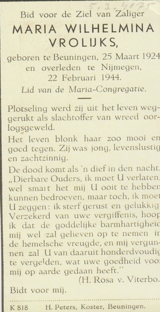 bidprentje (copie) Maria Wilhelmina Vrolijk