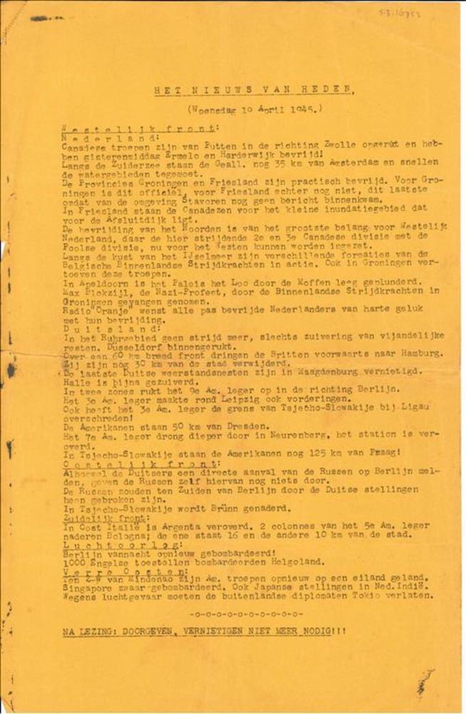 Het nieuws van heden (Woensdag 19 april 1945) (Harde...