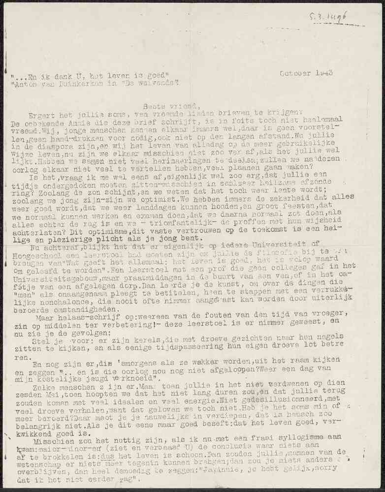 Studiebrief van Josef Volkers te Rosmalen aan het In...
