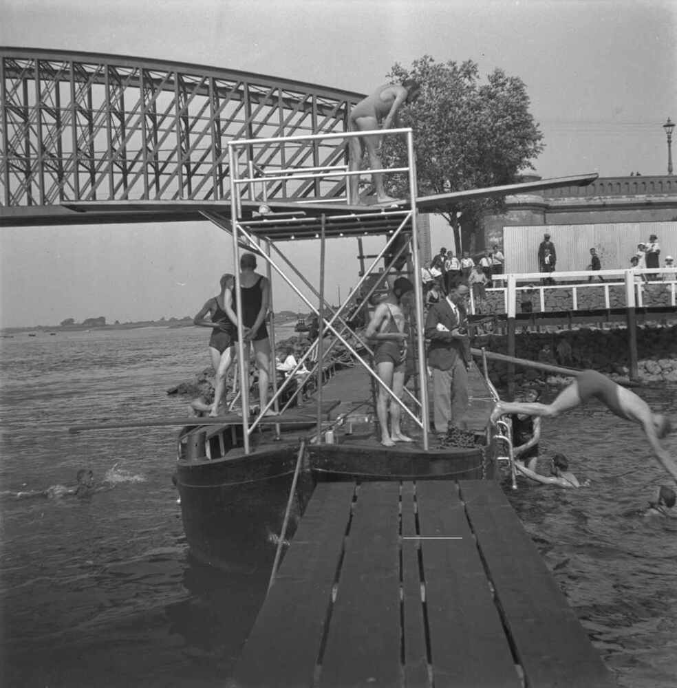 Foto, voorstellende de opening van het nieuwe zwemba...