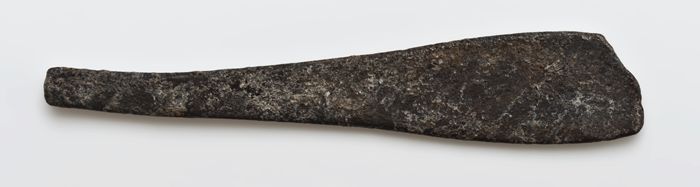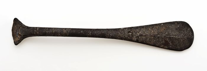 Kleine tinnen lepel met langwerpige bak, spatelvormi...