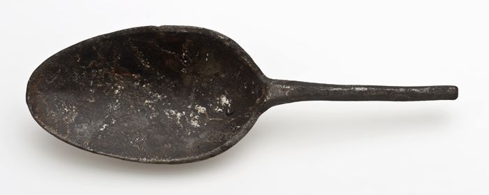 Tinnen lepel met ovaal blad