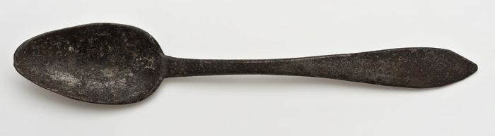 Kleine tinnen lepel met langwerpige bak