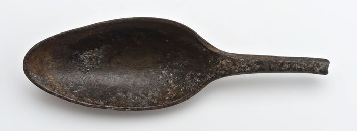 Kleine metalen lepel met langwerpige bak