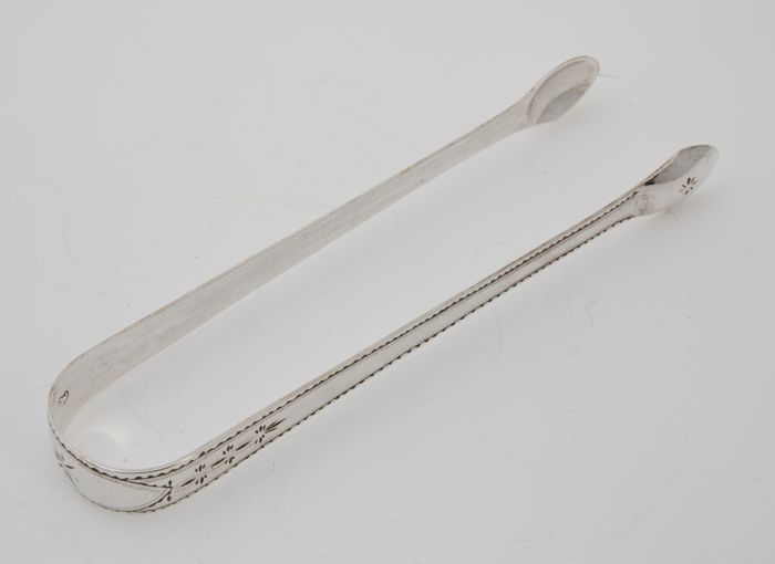 Zilveren suikertang met decoratie