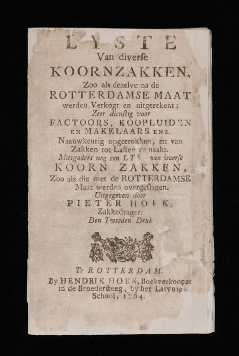 HOEK, PIETER. Lijst van diverse korenzakken