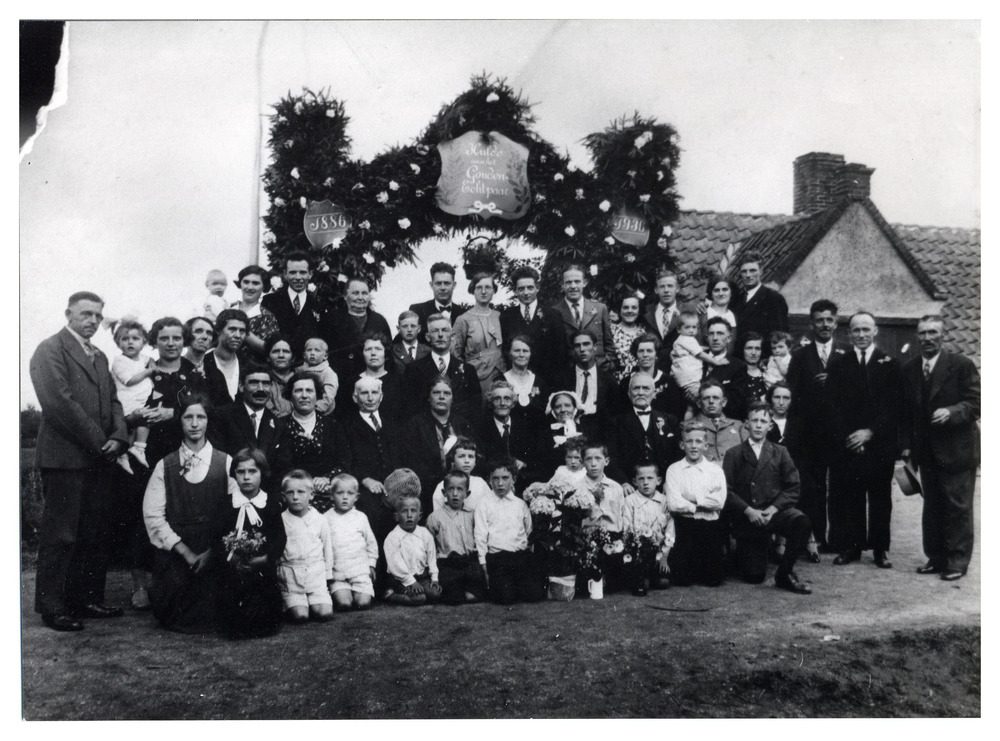 Een groot aantal gasten op de gouden bruiloft van Ja...