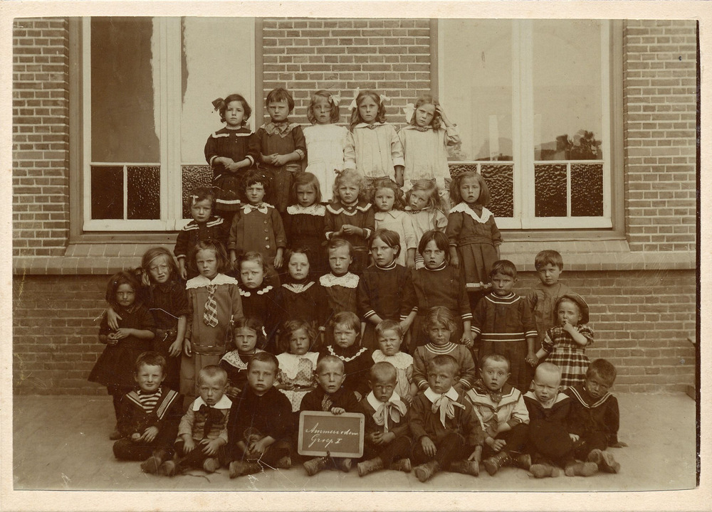 Schoolfoto: christlijke lagere school, groep 1. Acht...