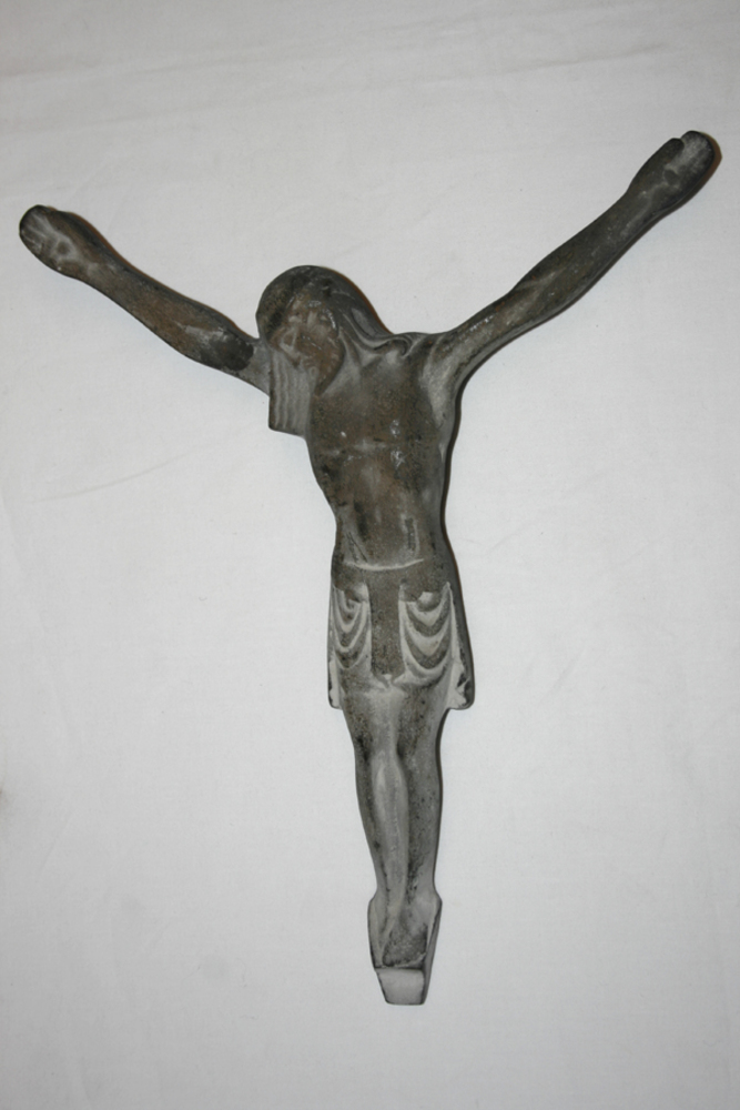 Christuscorpus van metaal bedoeld als grafornament c...
