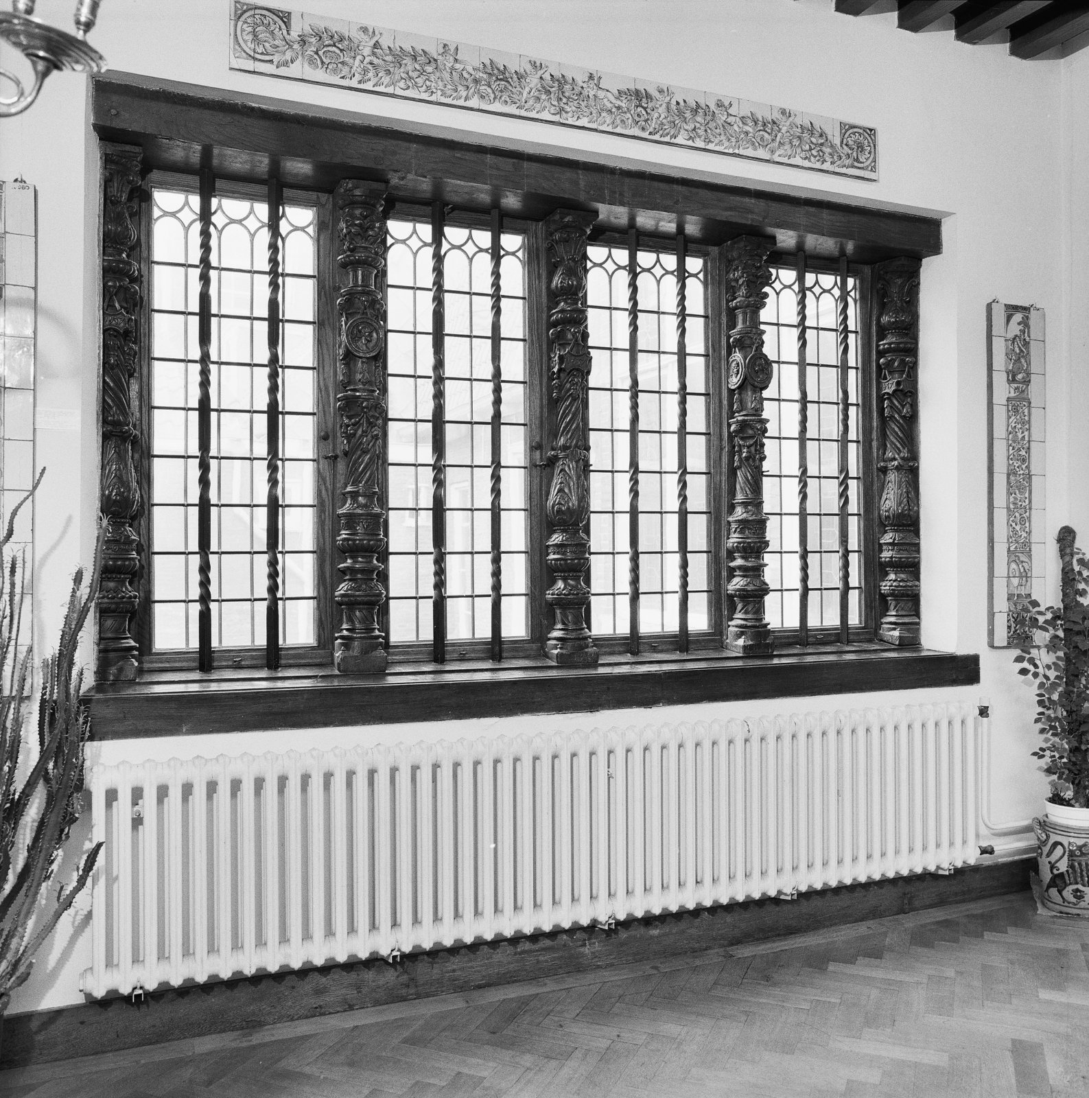 Interieur, rijk versierd raamkozijn (Noord-Nederland...