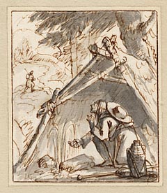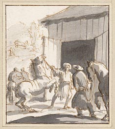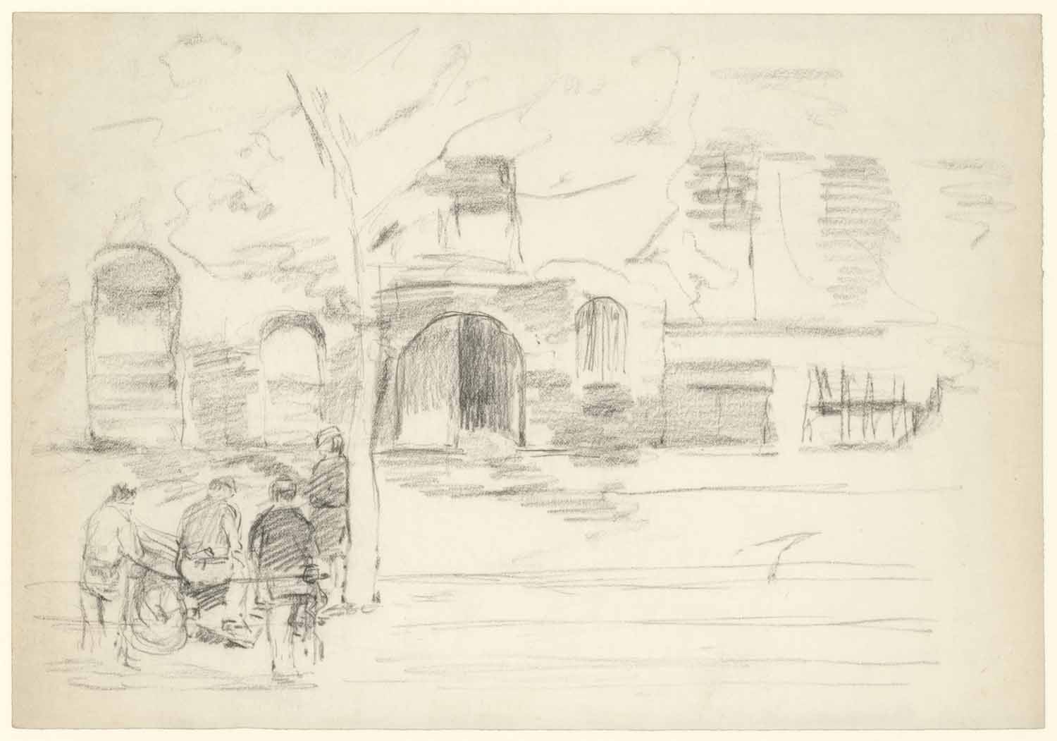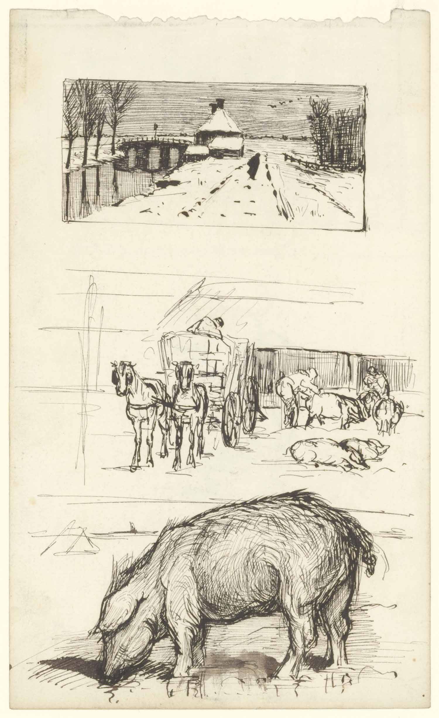 Studieblad. recto: winterlandschap; schuur, wagen me...