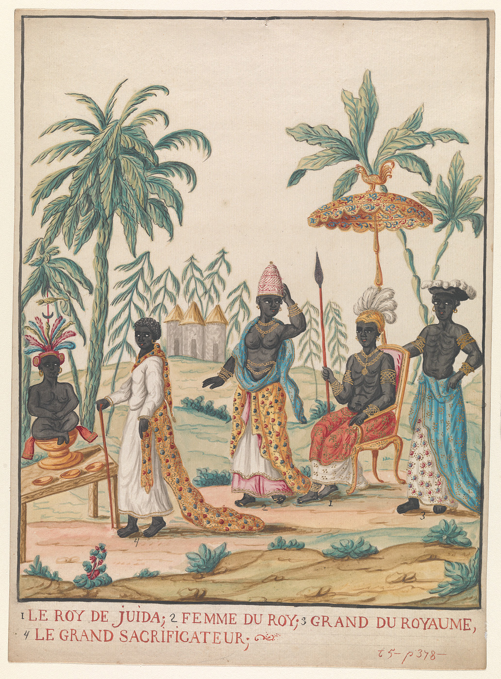 De koning van Juïda met zijn vrouw en zijn gevolg