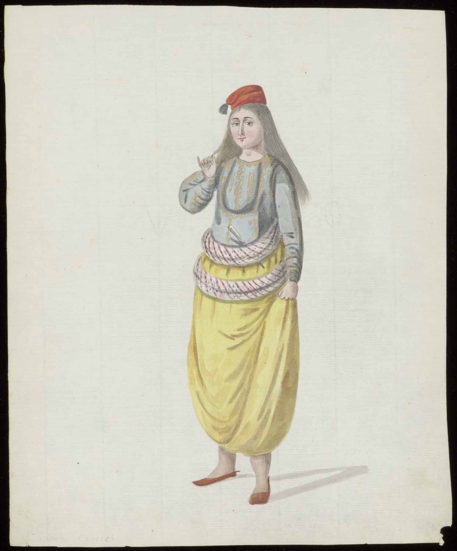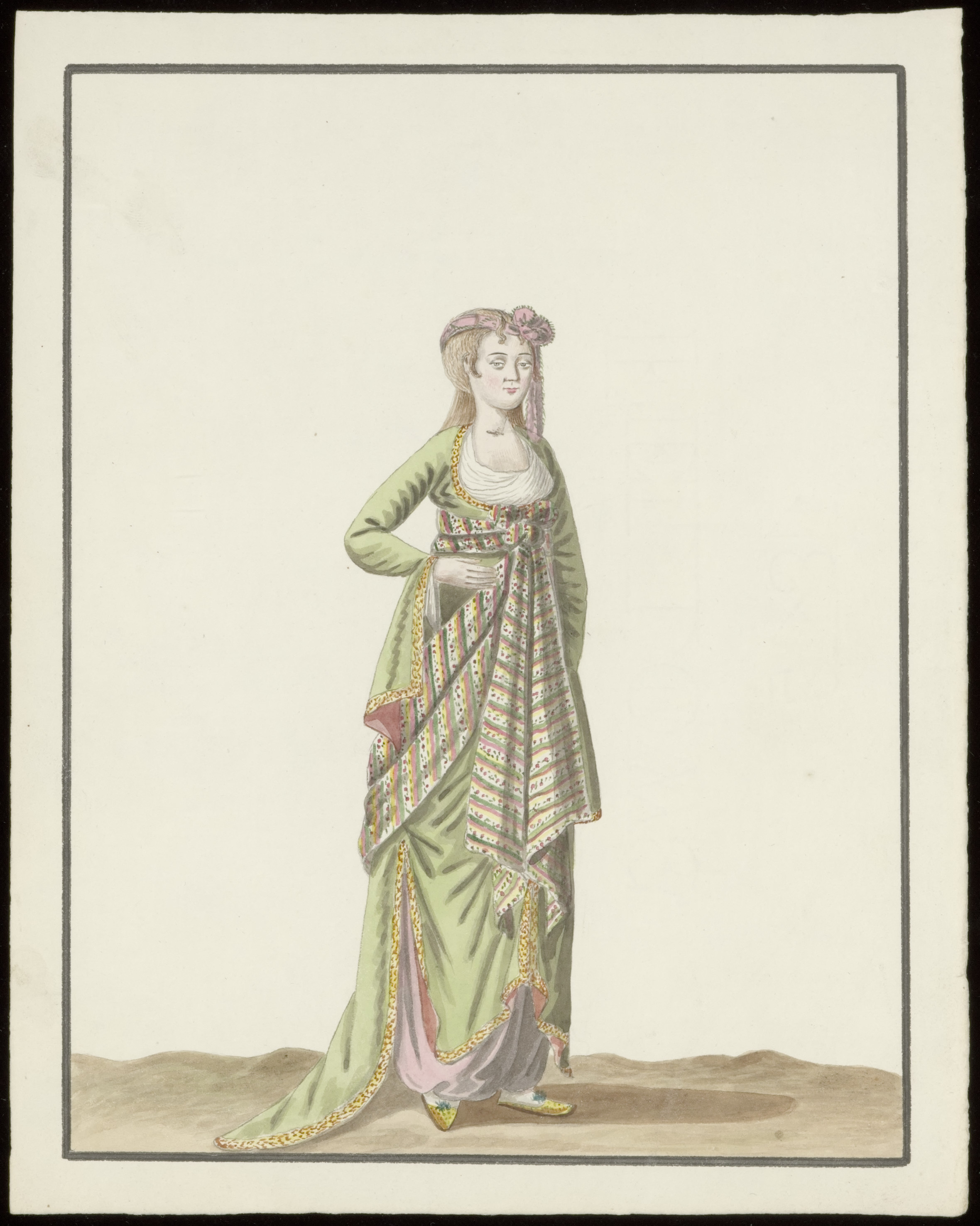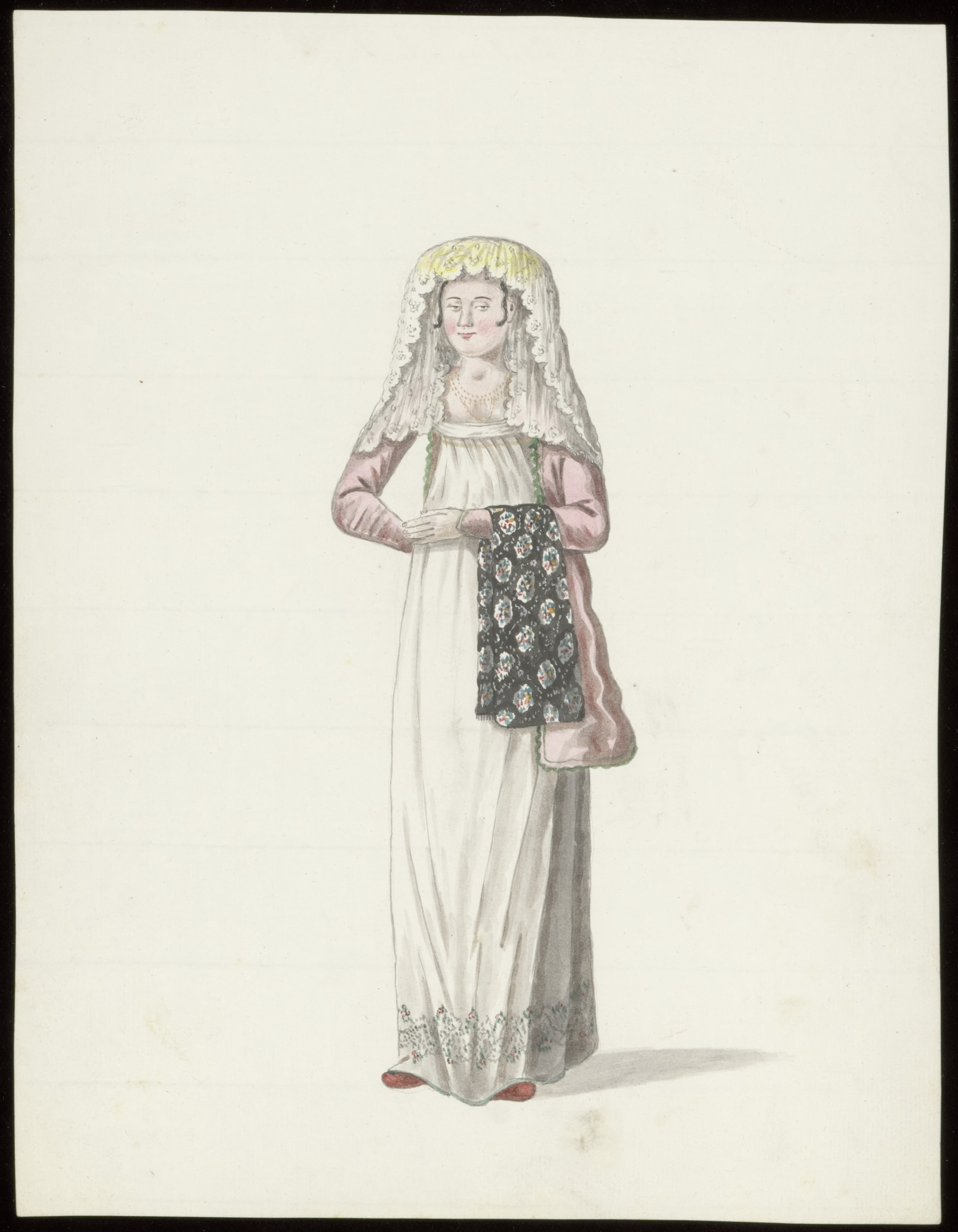 Studieblad met vrouwenhoofd en vrouw ten halve lijve