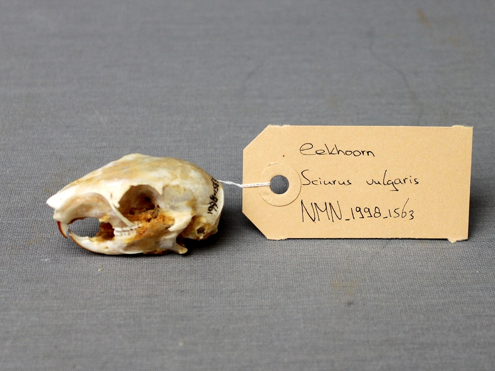 Paard; voorste deel onderkaak; op plank gemonteerd