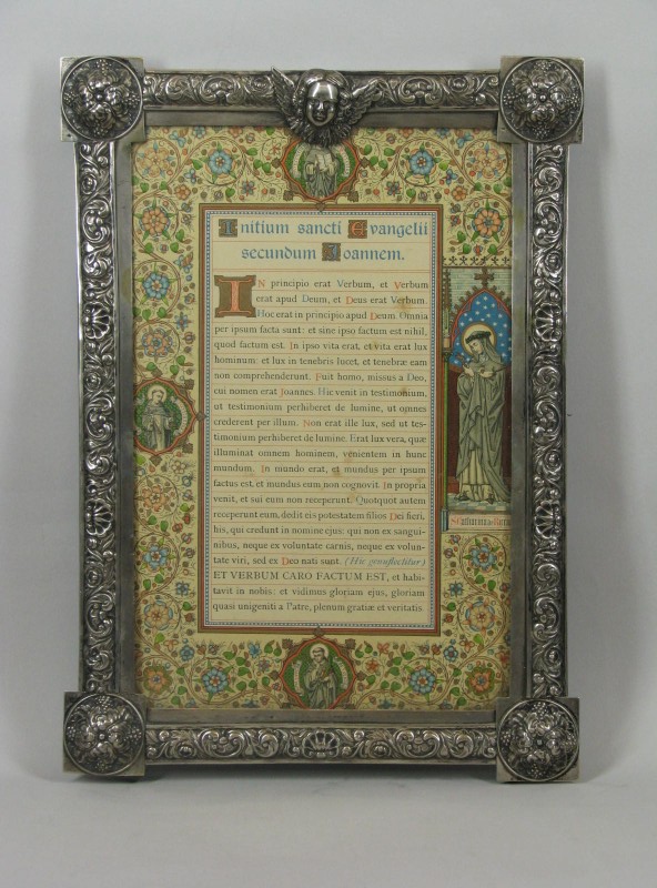 Canonbord met "Initium sancti ..." in houten lijst m...