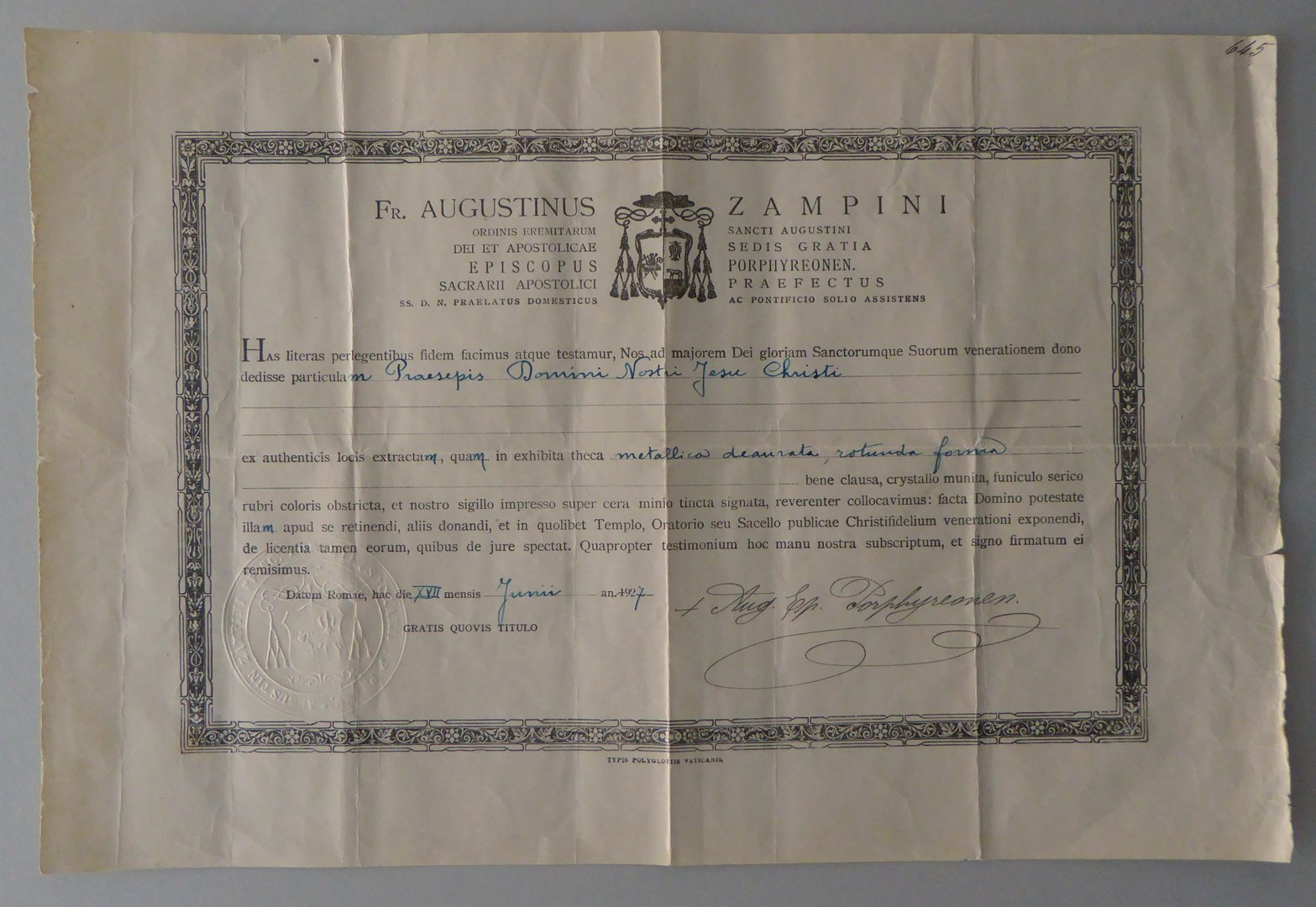 Ziekenbusje met graveerwerk versierd en bekroond met...