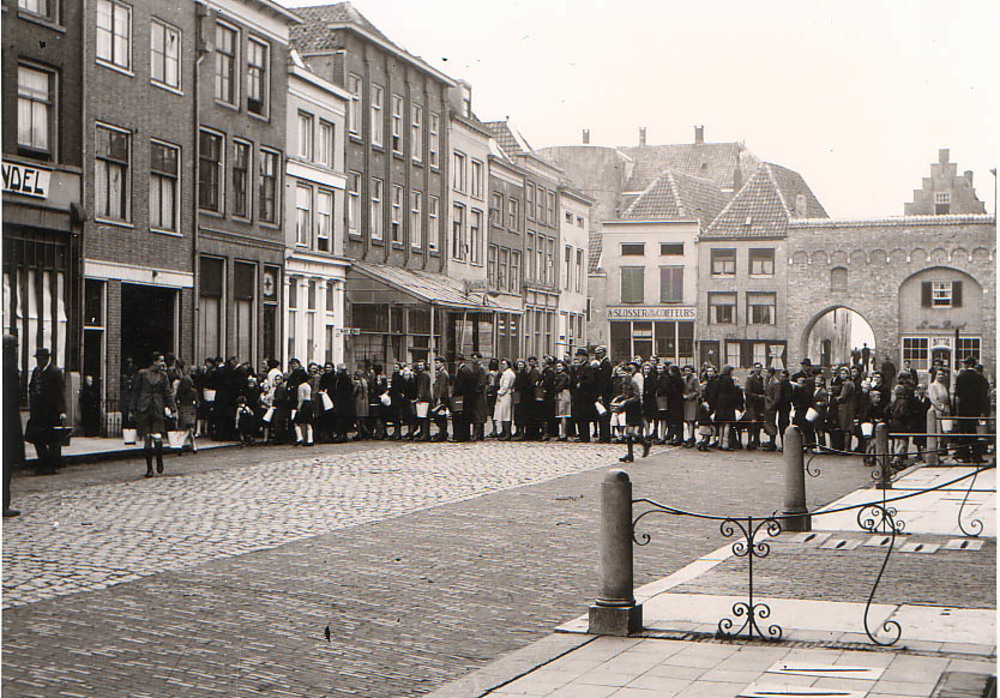 Melkhalen bij de gaarkeuken in de Waterstraat te Zal...