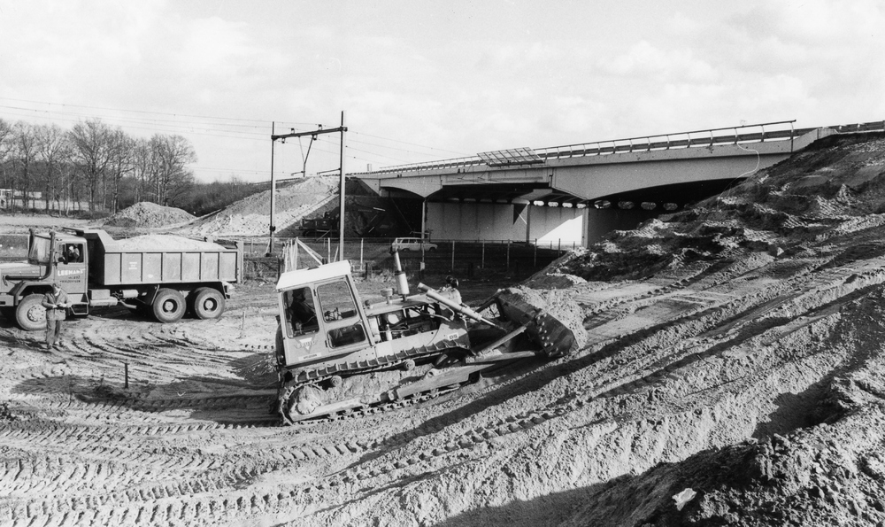 Werkzaamheden aan het spoorwegviaduct in de rijksweg 28