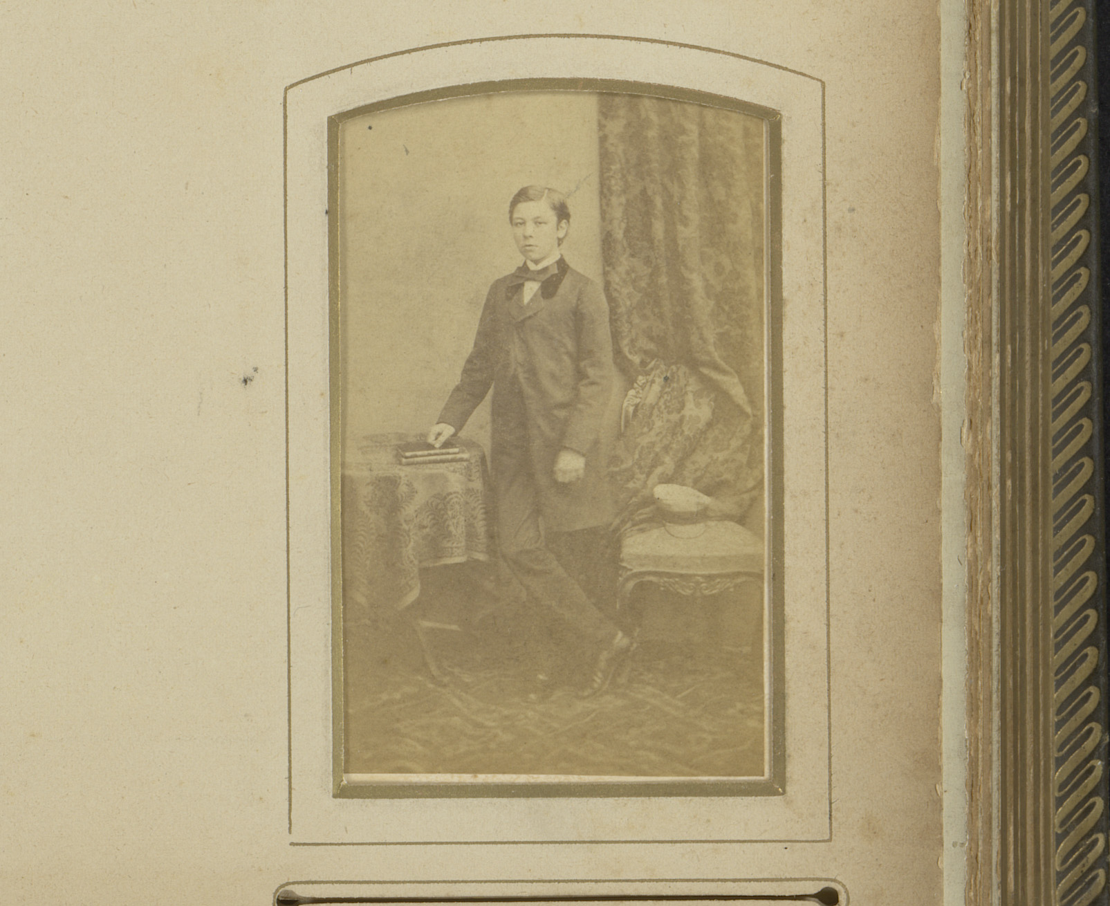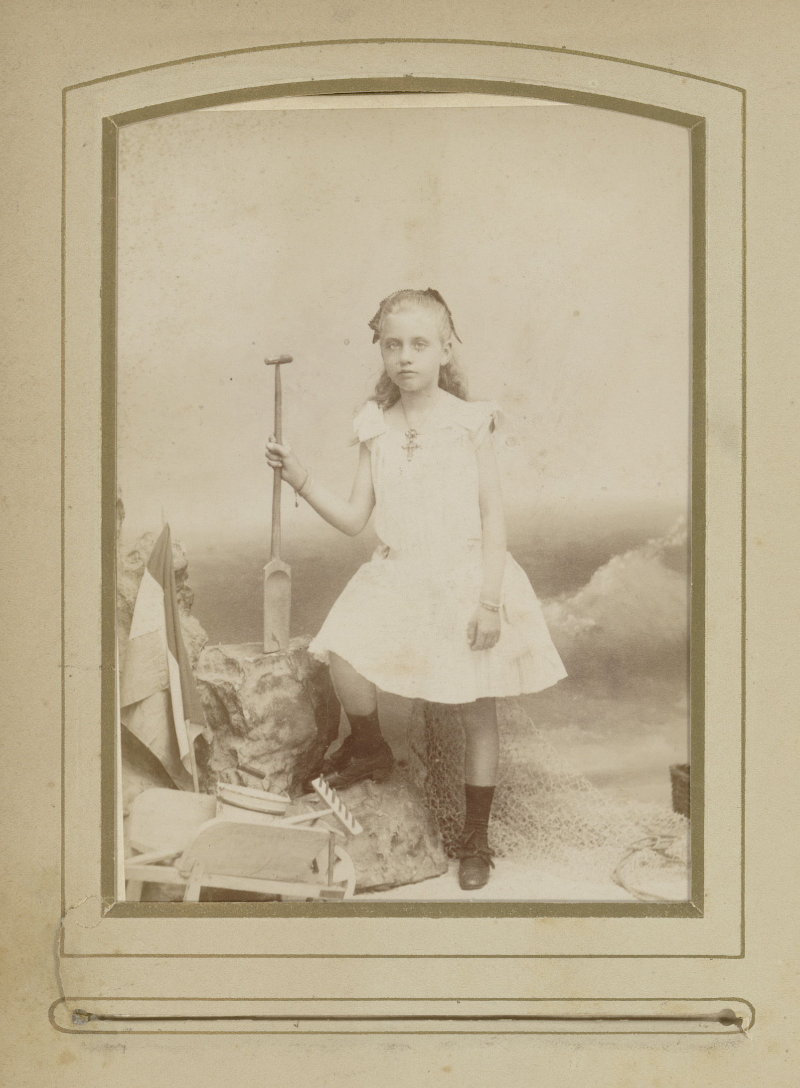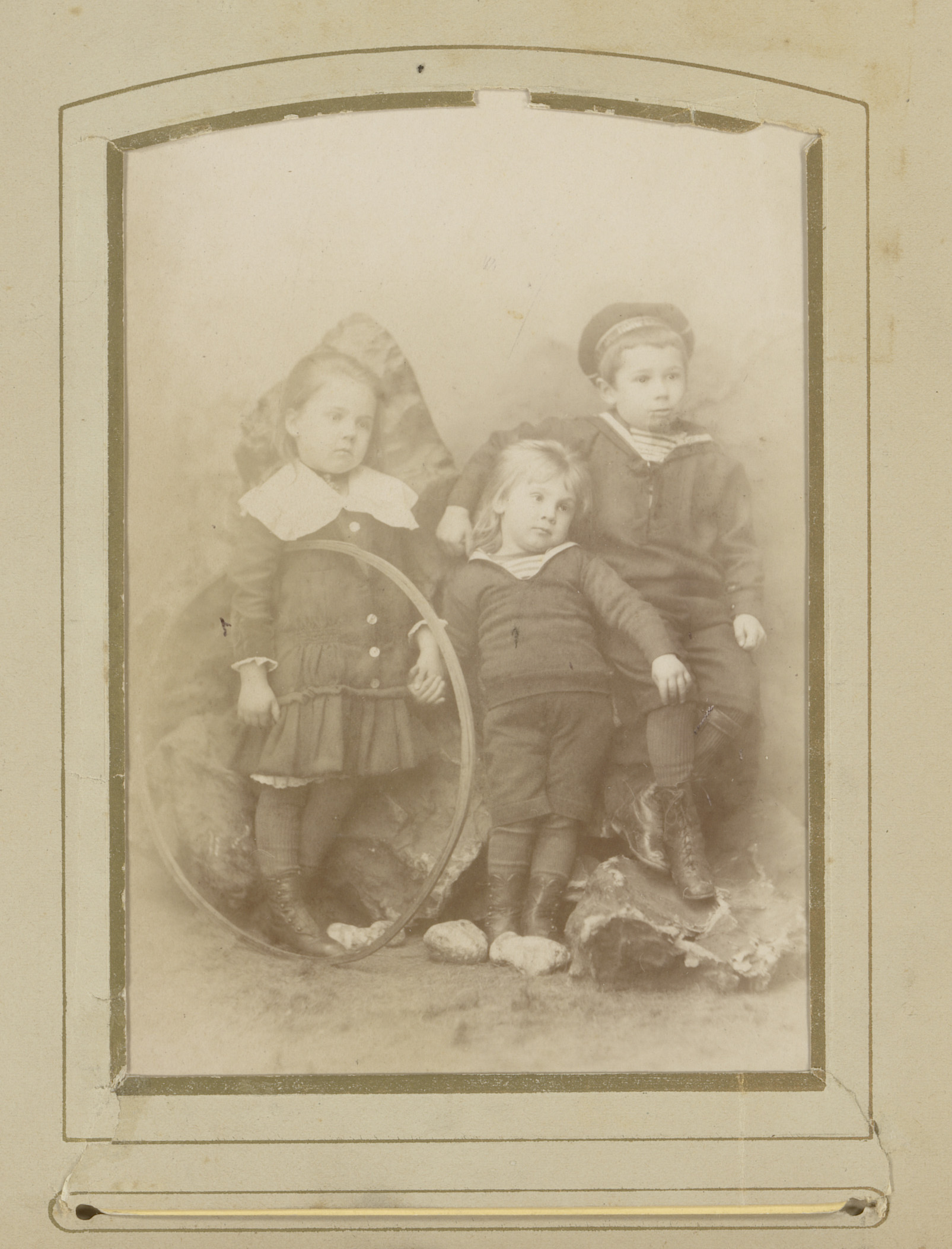 Portret van drie kinderen, waarvan twee in matrozenpak