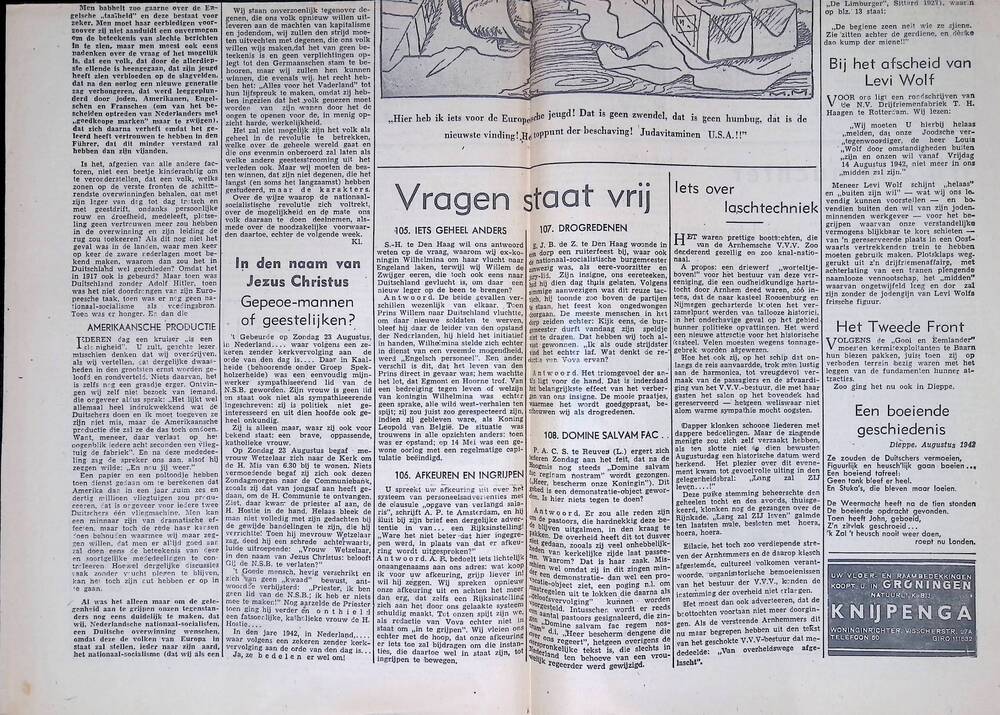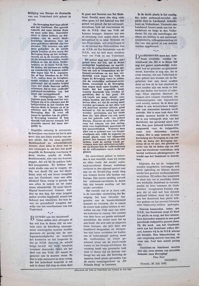 Krantenartikel: Mussert schrijft over: Oostfront en ...