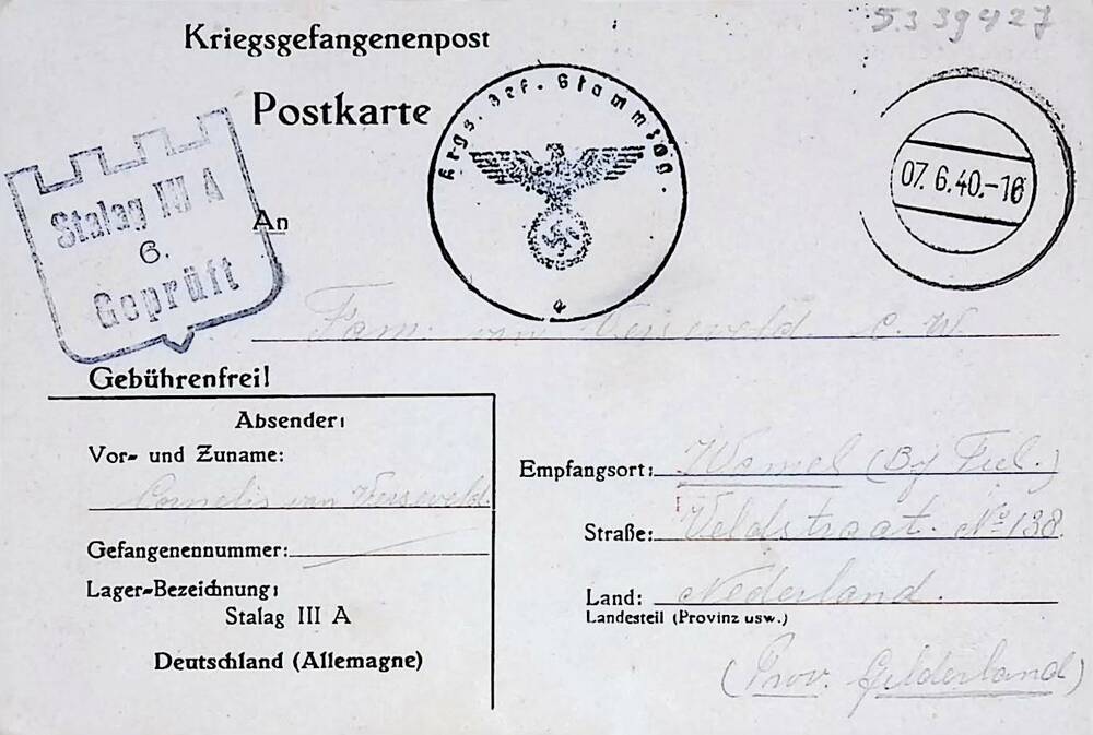 Briefkaart ( Kriegsgefangenpost) van C.van Verseveld.