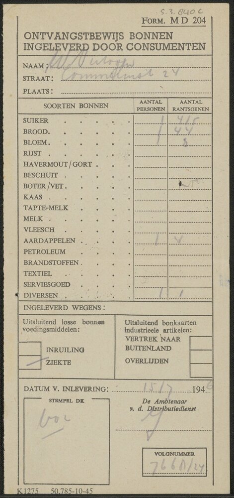 Ontvangstbewijs ingeleverde bonnen.