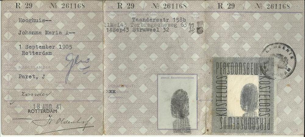 Persoonsbewijs van : Hooghuis, Johanna, M.A.