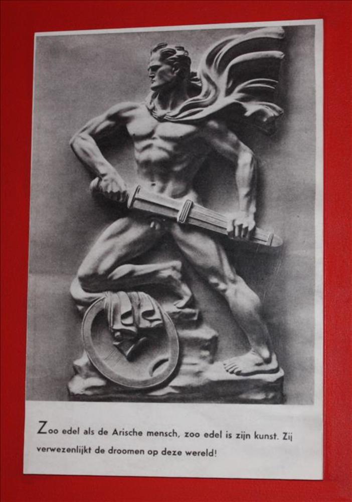 Sculptuur van naakte Ariër met zwaard.