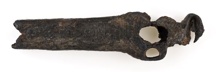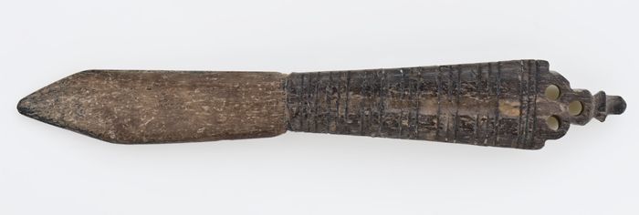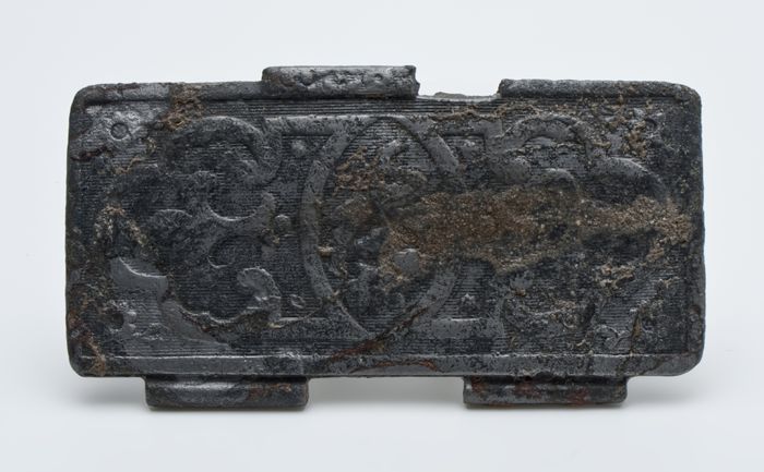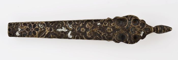 Bestekheftje met reliëfversiering en resten ingelegd...
