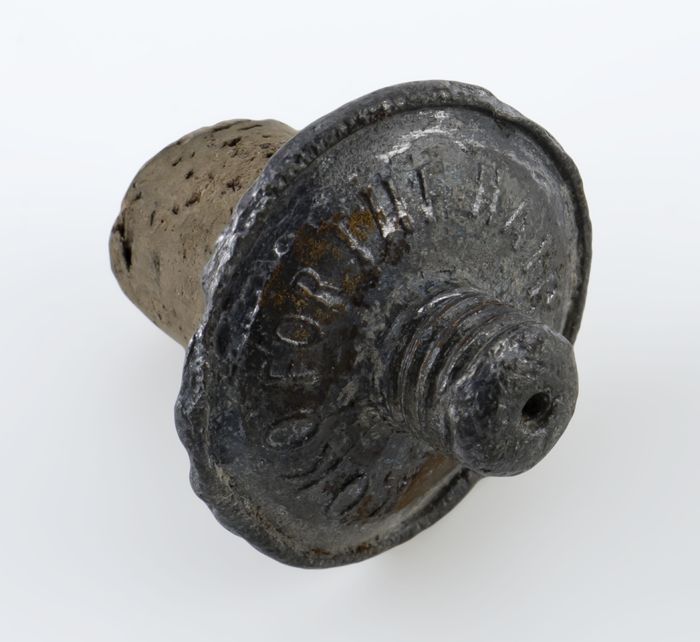 Tinnen tuit met kurken sluitrand en schroeftuit voor...
