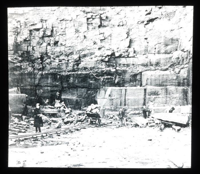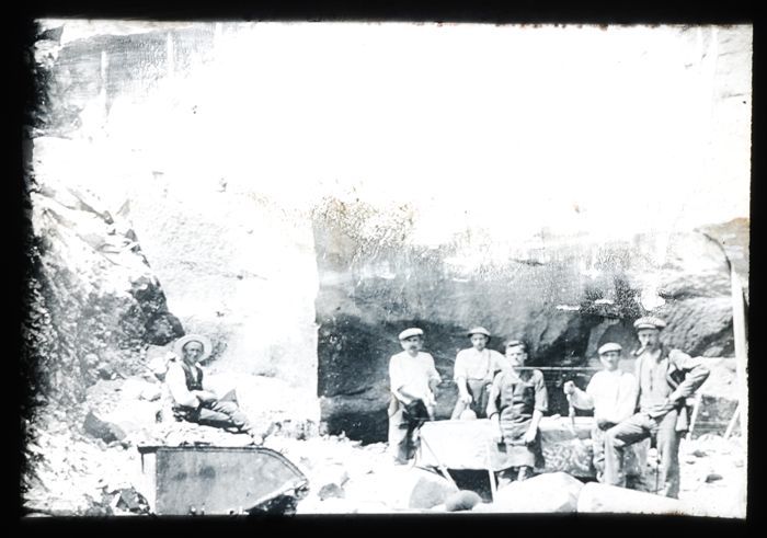 Glasdia "G. Watson" met afbeelding van steengroeve