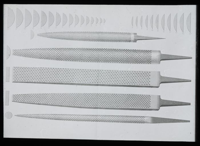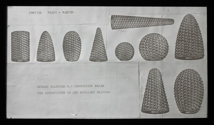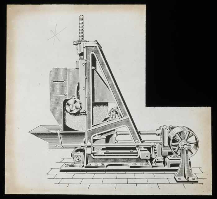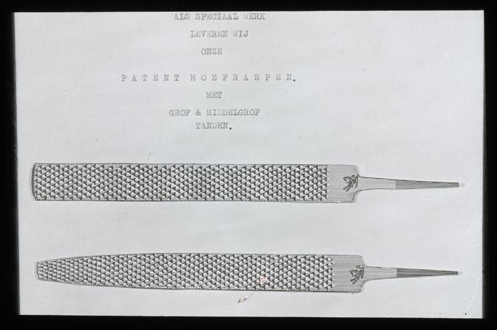 Glasdia "G. Watson" met "35 en 36", raspenkapmachine