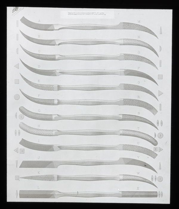 Glasdia "G. Watson" met afbeelding van "BEELDHOUWERS...