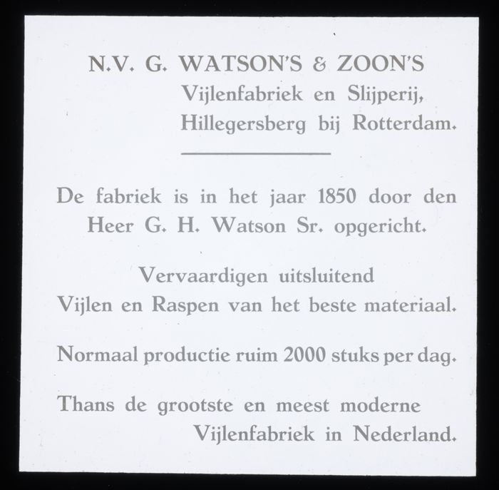 Glasdia "G. Watson" met advertentie "N.V. G. Watsons...