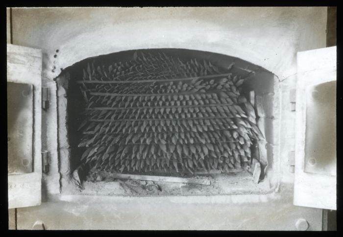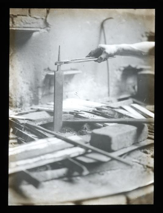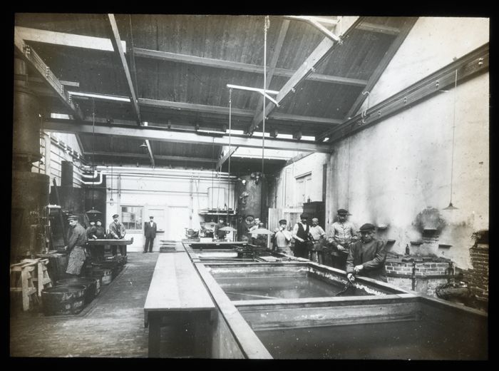 Glasdia "G. Watson" met "39", het harden in een loodbad