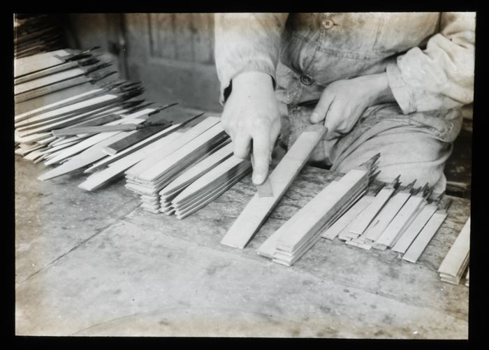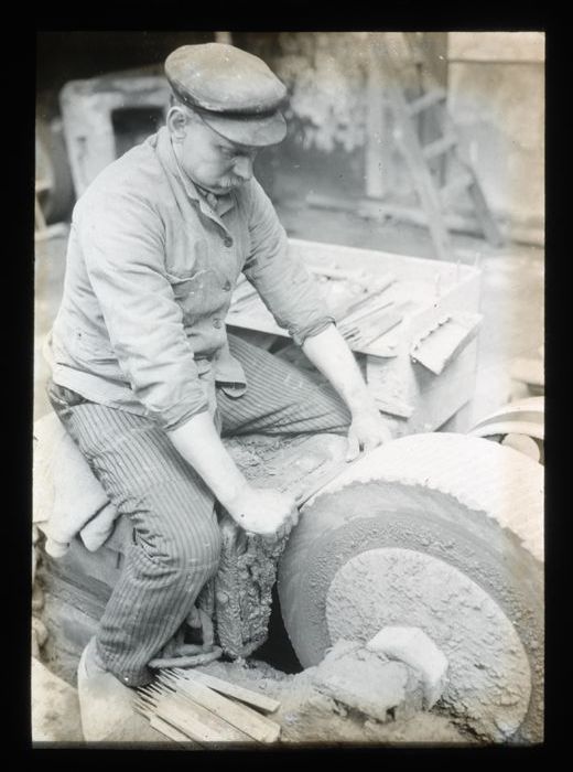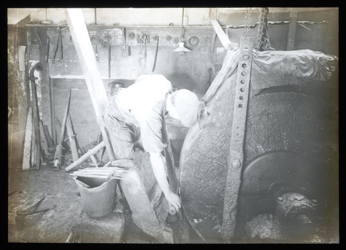 Glasdia "G. Watson" met "32a" een handslijper aan he...