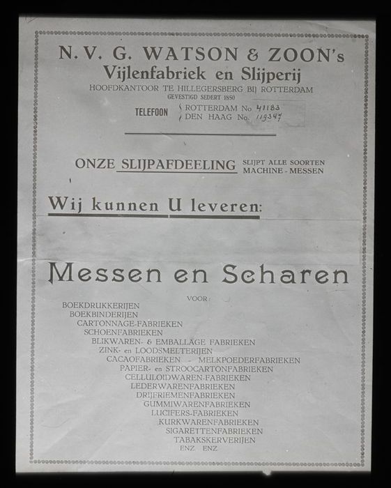 Glasdia "G. Watson" met advertentie "H16 Kapmach. Be...
